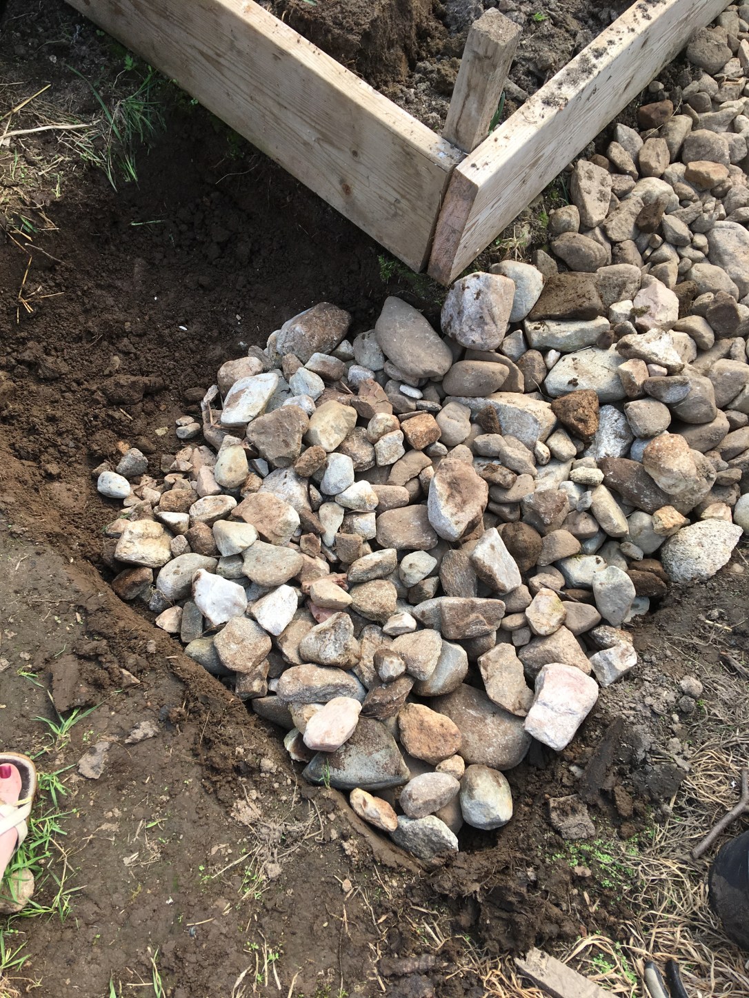 Little and often works best. And not focusing on the task itself of picking stones. But on what you’re planning on making with them gives the satisfaction (because really, picking stones is a lifetime job and fruitless, unlike the hobby of collecting fousty veg. No wait, that would be fungus, rather than fruitless if Ibtook that up…). Stone shifting is the daytime TV programme task on its 758th repeat. So where am I rolling my stones to? First space, the polytunnel. Yes, a bit odd but I’m doing a mini Calum (I am never going to hand make a road like him, but great book) and making a mini path (rather than a road) around the raised bed.