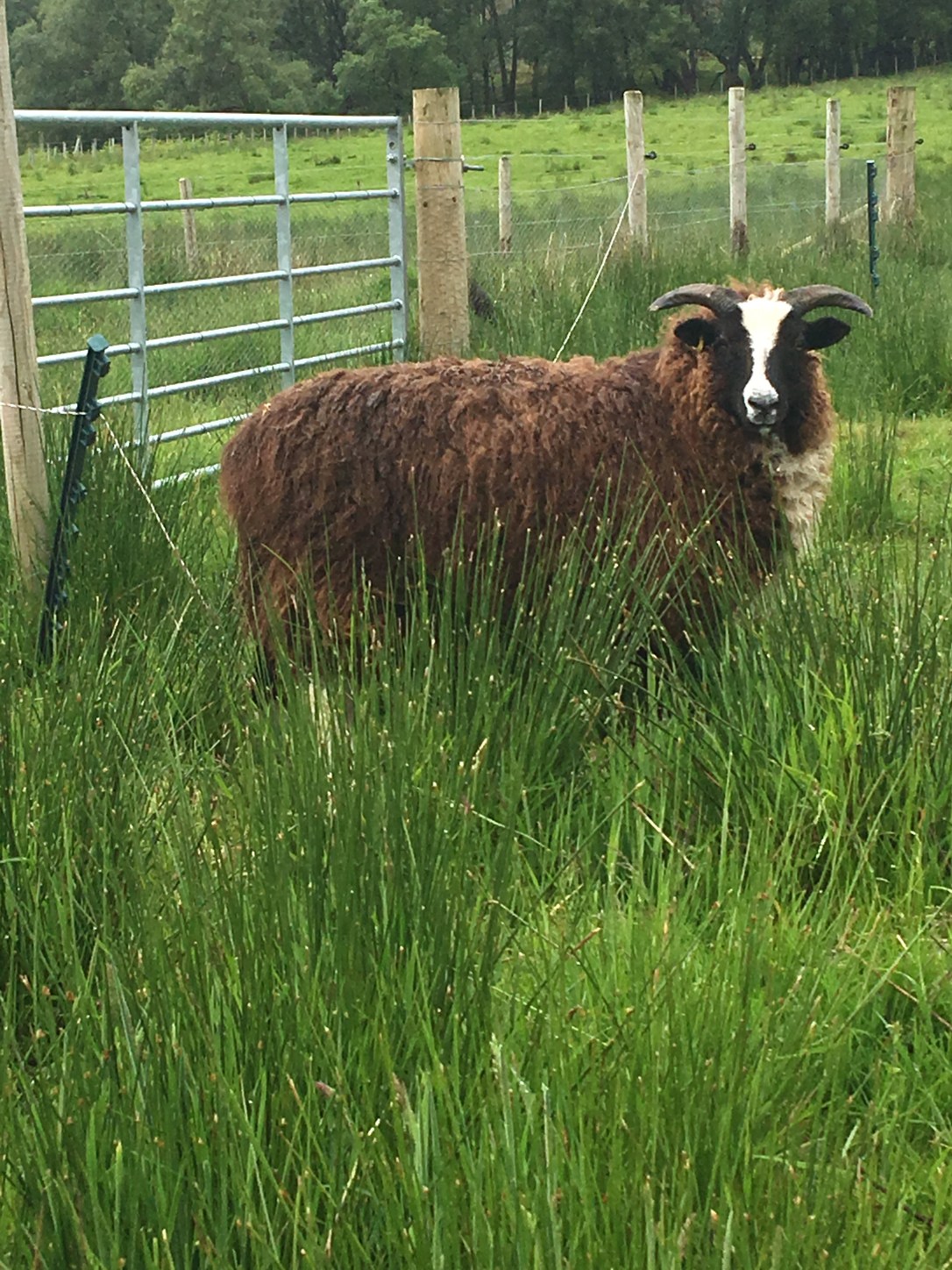 These boys were not getting offered a bucket for no apparent reason. The after dinner chat with the Mini Crofter (fifth time of reading Posie and Pip), a sheep was spotted to be caught in some wire. Now, the electric wire is set up to allow sheep through a gate but not the cows. Somehow one of the Jacobs decided to use the electric post as a back scratcher and pulled up a post. This in turn dropped the wire, which the muppet then got a leg caught.