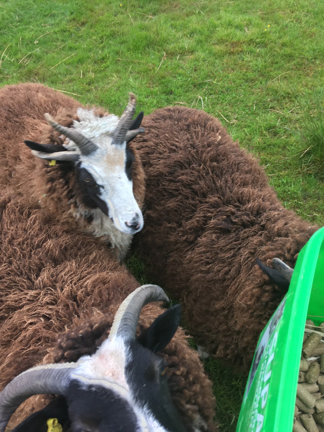 Micro Crofter was placed in a bouncy chair, Mini Crofter told to watch Mummy through the window. And with that, on went the waterproofs, for having watched the sheep in question, I was going to be wrestling the muppet to untangle. I decided to take a bucket as comfort food, as that works for most of us in certain situations. However, the site of the bucket got the sheep to walk with a determined mind and just pull himself clear. And join the other five wanting a treat too. And I hadn’t even whistled to get their attention. Having just watched sheep dog trials, we still have no need for a sheep dog. And the nursery rhyme needs to be adapted.