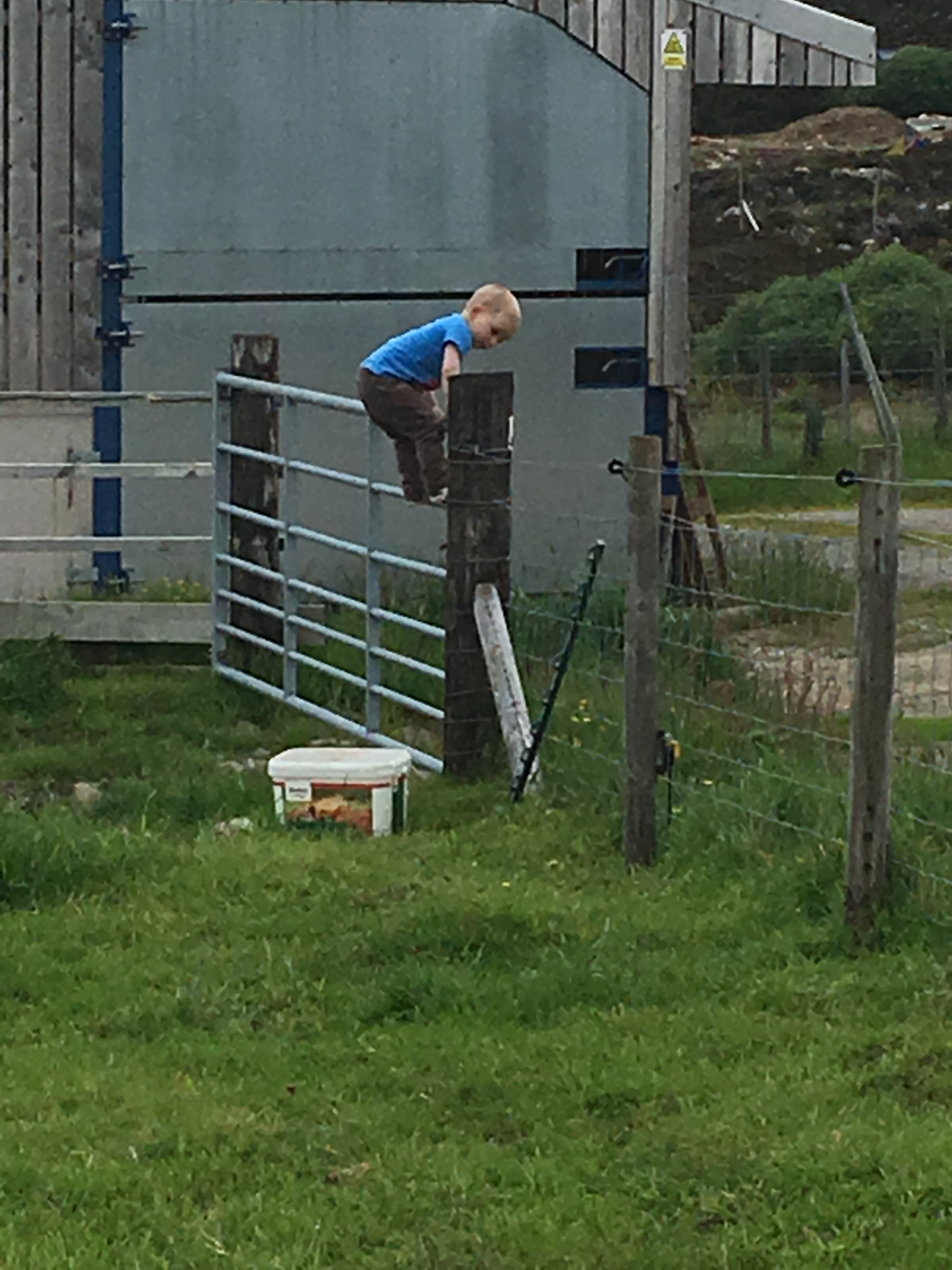 However, while he muses the day along, croft and life on it keeps plodding. It doesn’t grind to a halt and pause to contemplate the global stock markets. And crofting with two mini crofters is like an iTunes playlist stuck on repeat. You hear the same things for oh, 26 times in one day. Mum, why and no are the three words topping the word chart. The top sentences are trumped with: just leave the manure pile alone, stop licking the windows, stop putting sand into the raised bed, and no, I can’t swing you in the house, there isn’t room to swing a cat!