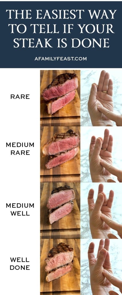- Physical touch: Let’s sit together while we look up what other cuts of beef we could buy for the next special occasion and what wine to pair with it. (N.B. steak cooking does have a simple ‘touch test’. Although it sounds like a perfect example under the physical touch, I would probably avoid prodding the person of endearment like you do the steak ‘touch test’ and refrain from giving them the verdict on how ‘well done’ they are; I am not a relationship councillor but believe me, don’t go there).