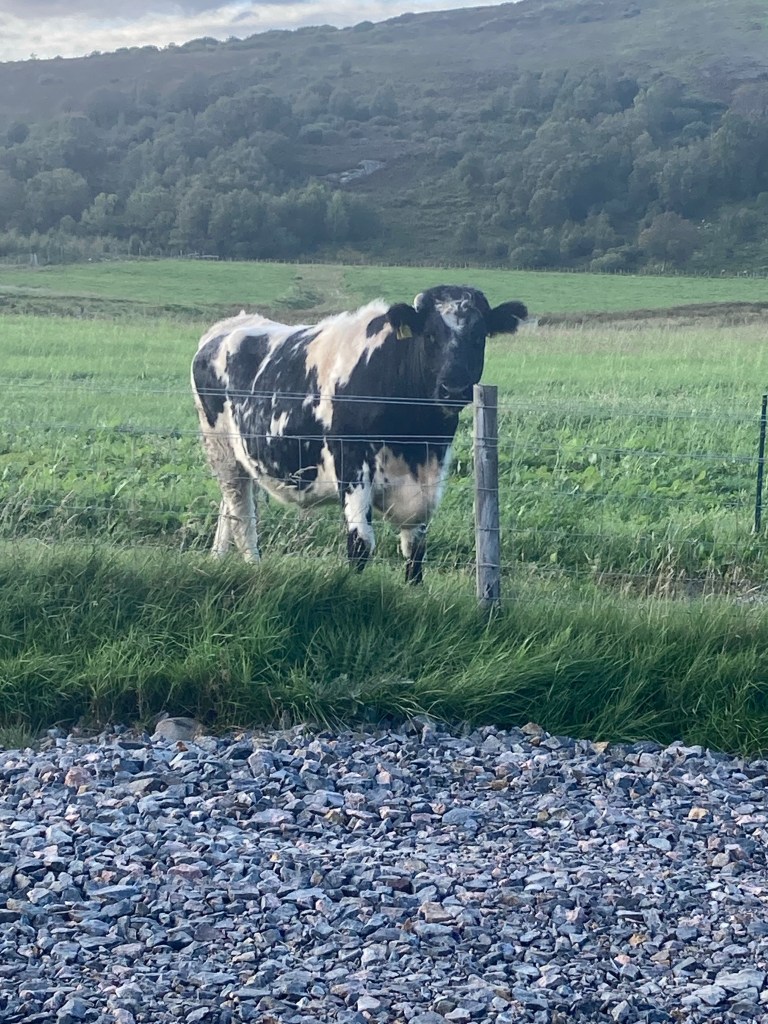 However, (and a big however!), over the summer we have been moving cattle around while our reseeded grass got established. Out of one field, into a trailer and just 5 mins round the corner. All went swimmingly (well, swimmingly like Eric the Eel when you are taking down electric fence, putting it back up and trying to work with livestock). Swimmingly, that is, apart from one. Jack Daniels. Jack was one of four boys born here two years ago. He has often been hestitant but that’s workable. I could still get him to a bucket, and we had moved him several times before. But his anxiety suddenly escalated. Into a new league. On this one occasion, all the others walked into the pen, loaded and moved. Apart from him. He refused point blank to go anywhere near the loading pen.
